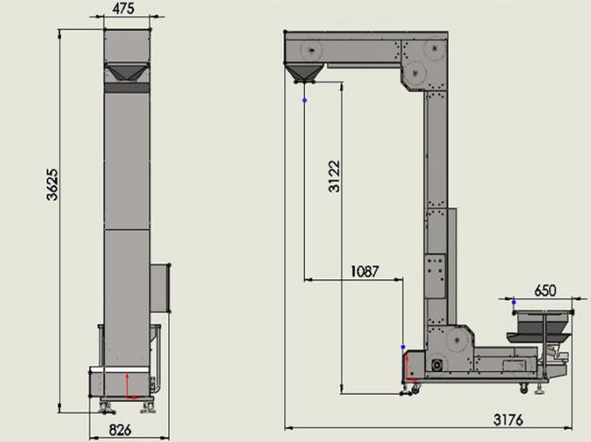 5.z型連續(xù)式斗式提升機(jī)由304不銹鋼和PP塑料組成,可用于食品級(jí)物料的輸送。